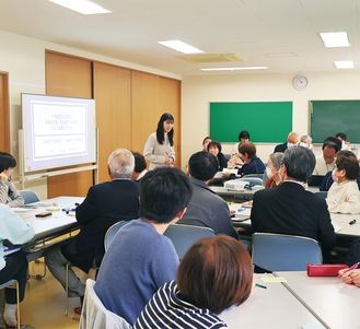 大根地区地域ケア会議の拡大版が3月24日、下大槻団地集会場で行われた。同会議は2カ月に1回実施し、「地域でいつまでも暮らすためには何をすれば良いか」と話し合ってきた。同地区では東海大学健康学部市川研究室の学生も会議に関わり、下大槻団地をフィールドに卒業論文を執筆。今回は、卒業論文を今後のまちづくりに生かしてもらおうと、発表の機会を作るため「拡大版」として会議を行った。