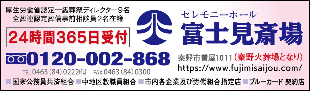 現在、同斎場では葬祭スタッフ(正社員)を募集中。詳細については面談で。「未経験者も歓迎」とのことなので、同斎場【電話】0463・84・0222へ問い合わせを。