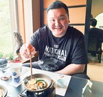 宮城野親方は18日から秦野入り。巡業を盛り上げようと、丹沢まつりをはじめとする各所イベントや、手打ちそば石庄庵=写真(店提供)=などの店舗を行脚して巡業をPRした。