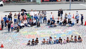 東海大学前駅の駅前広場に5月11日、巨大なチョークアートが出現した。これは「東海大学前駅にぎわい創造検討懇話会」が初めて主催したにぎわい創出イベント。当日は親子連れなど120人が参加した。