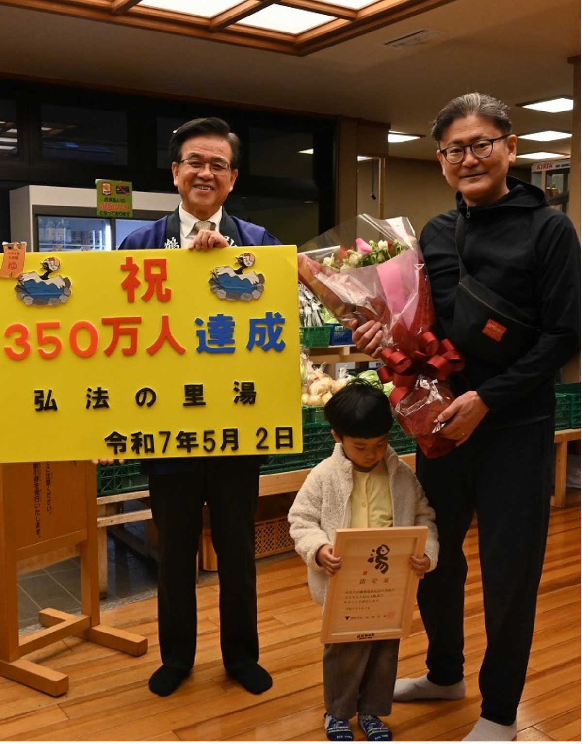 秦野市営施設「鶴巻温泉弘法の里湯」の入館者数が5月2日、350万人に達した。2001年10月のオープンから24年目で節目を迎えた。