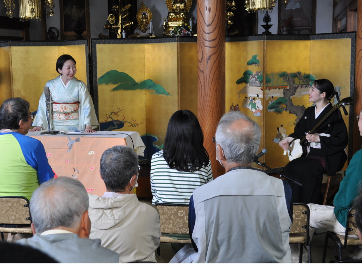 市内文京町の天徳寺(安居院昭道住職)でこのほど、「三可子・千春二人会 浪曲の調べ」が開催された。