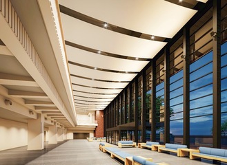 工事では大ホールと小ホールの天井に落下防止措置(ワイヤー工法)を実施するほか、舞台音響を更新する。大ホールホワイエと市民ロビーは、既存天井を撤去し膜天井に改修。電気設備と機械設備の更新も行われる。