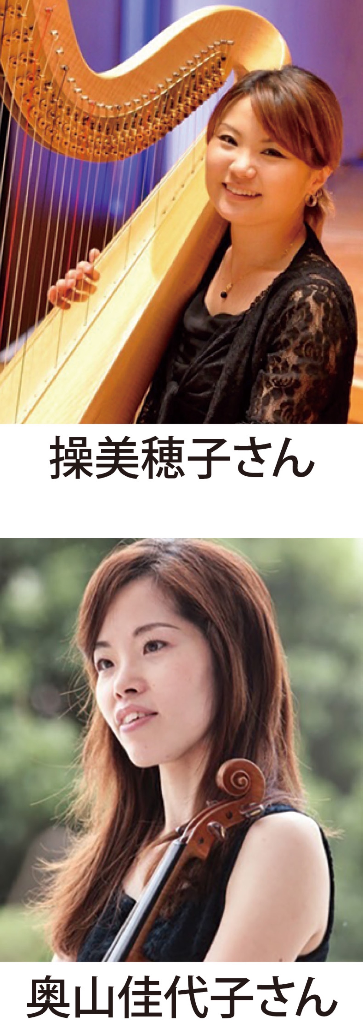 当日はハープ奏者の操美穂子さん、ヴァイオリニストの奥山佳代子さんを迎える。コンサートに加え、出演者の手ほどきで楽器体験もできる。鑑賞希望者は公演事務局【電話】0463・81・1211へ予約を。当日払い。