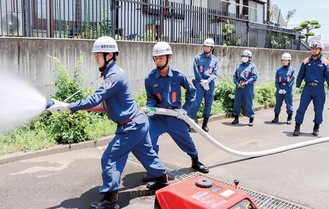 秦野市消防本部が6月28日、増加傾向にある学生消防団員を集めて合同訓練を初めて実施した。市内曽屋の消防本部屋外訓練場で行われた訓練には学生5人が参加し、消防職員の指導を受けながら放水やロープワークに取り組んだ。経験の浅い学生からは「学んだことを生かしていきたい」という声が聞かれた。