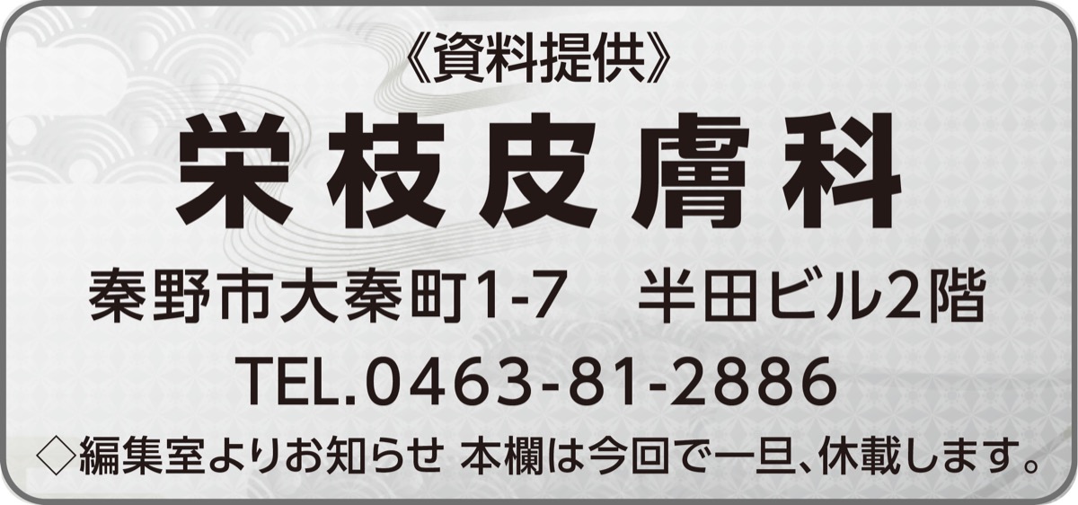 秦野市大秦町にある「栄枝皮膚科」の院長・栄枝 重典氏(日本専門医機構認定/皮膚科専門医)が、自身の見識を基に健康に関する様々な情報を本紙読者に分かりやすく教えてくれるコーナーです(不定期掲載)