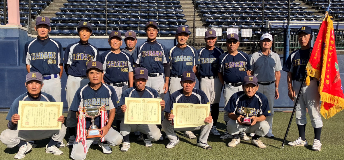 60歳以上が所属する野球チーム「秦野遊球倶楽部」(有馬静則代表)の古希チームが、9月30日から10月2日にかけて群馬県で開催された「第21回関東古希軟式野球大会」で初優勝を飾った。この結果を受け、古希チームは来年群馬県で開催される「全日本古希大会」に出場する。