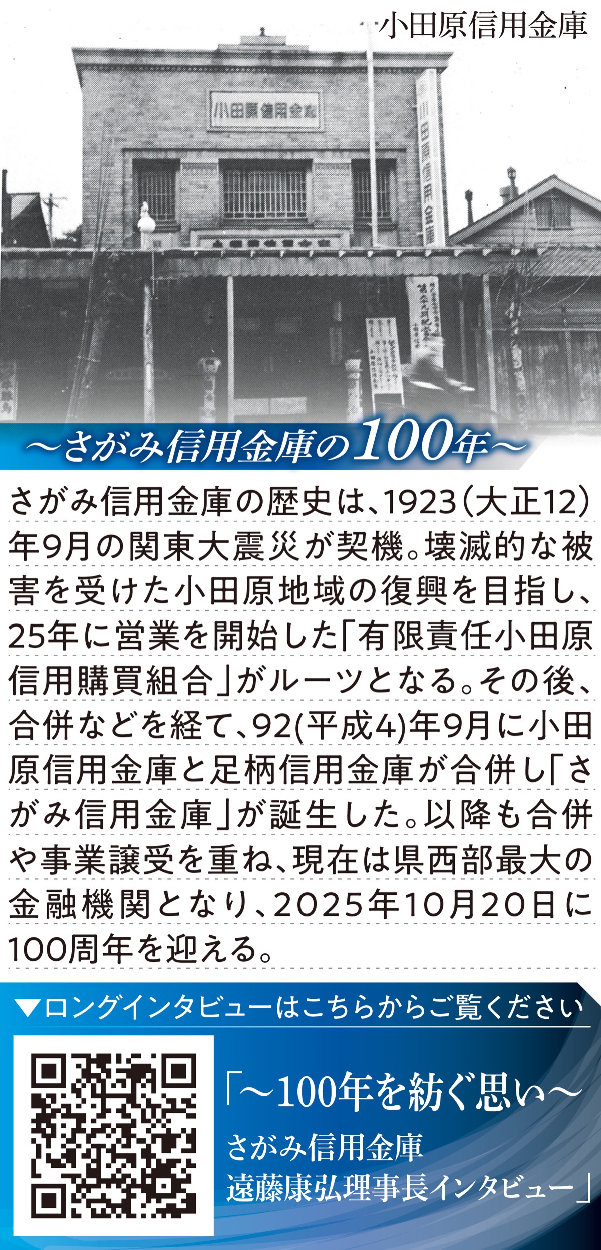 神奈川県西部を拠点とする金融機関、さがみ信用金庫が10月、100周年を迎える。震災復興を設立の背景に持ち、長く地域と歩むその思いを遠藤康弘理事長に聞いた。