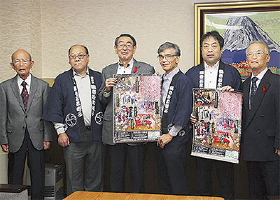 鶴巻若衆囃子保存会(芦川昇会長)のメンバーは、10月23日に秦野市役所を訪問し、古谷義幸市長に今年12月に横浜市で開催される「かながわ民族芸能祭」に出演することを報告した。芦川会長は「秦野の代表として精一杯頑張ってきます」と話した。
