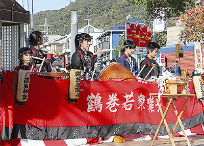 また同団体は11月3日、鶴巻温泉駅から大山ケーブルまでのバスの実証実験開始を祝い、バスの発車に合わせ、同駅前でお囃子を披露。一番バスの乗車を待つ観光客らを楽しませた。