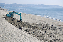 浸食が進む鎌倉の海岸。定期的に砂が補充されています。