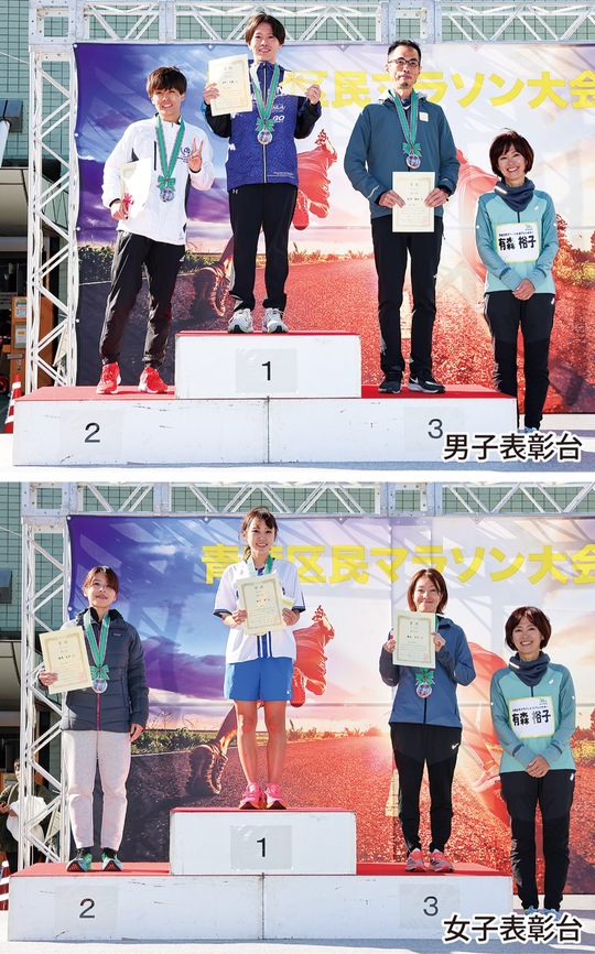 一方、女子で連覇の金子さんは横浜総合病院に勤務する歯科衛生士。荏田高校陸上競技部の出身で、現在は自宅近くの多摩川のコースを走って練習している。昨年の初優勝を受けて、今年は勤務先から応援されての出場に。「タイムよりも順位を狙っていたけれど、大会新で記録も満足」と笑顔を見せた。区民マラソンは「20代最後となる来年までは連覇を目指したい」と力強く宣言した。