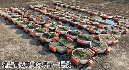 植物育成実験は24年5月から行われている。配合比率ごとに、紙おむつから生成した肥料を配合した19種類の実験用培養土を入れたプランターに緑化植物「クラピア」を植栽。植被率を指標に育成状況を定期測定し、2回越夏させる。この度、1回目の越夏が終わり、複数の配合比率で既存培養土と同等の植被率が認められた。