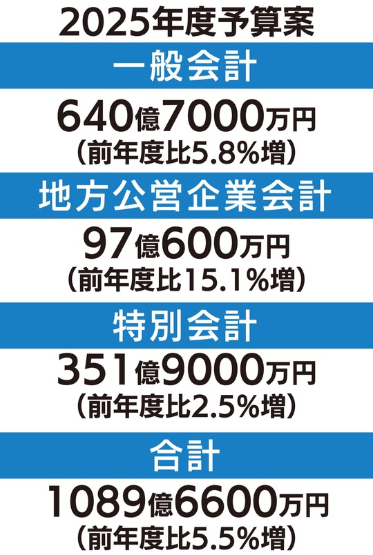 秦野市は2月17日、2025年度の当初予算案を発表。一般会計・総額とも過去最大を更新したことがわかった。一般会計は640億7000万円(前年度比5・8%増)。総額は1089億6600万円(同5・5%増)で、2年連続で1000億円を超える予算規模となった。