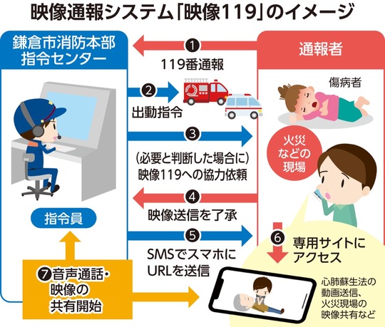 鎌倉市消防本部は、4月1日から119番通報者とスマートフォンで映像のやり取りができる「映像通報システム 映像119」の運用を開始した。隊員の到着前に傷病者や災害現場の状況の映像をリアルタイムで確認し応急措置の方法を映像で伝えたり、救助現場状況に応じて部隊を派遣するなど活用し、迅速な消防救急活動につなげる。