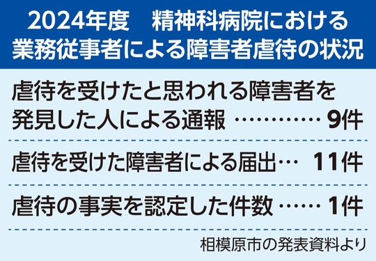 精神科病院での虐待 市が通報状況を初公表 年間20件、うち1件を認定