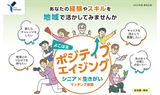 「人生100年時代」といわれ、60歳以上の人生が長くなる中、シニア世代の経験や知識、技術を地域の活動に還元してもらおうと、横浜市が推進するシニア×生きがいマッチング事業「よこはまポジティブエイジング」。昨年度に続き今年度も都筑区がモデル区の一つに選ばれた。