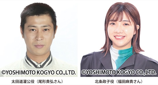 今回の配役では、お笑いトリオ「パンサー」の尾形貴弘さんが太田道灌公役を、お笑いトリオ「3時のヒロイン」の福田麻貴さんが北条政子役を務める。