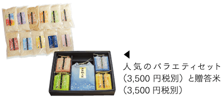 例えば、贈答用セットや料理や健康志向に合わせて厳選した11種の少量パックを組み合わせたバラエティセット等も人気。また、被災地を応援したいとの想いから熊本県産「森のくまさん」の販売を行う等、お米をトータルで提案してくれる。五ツ星お米マイスターのいるお米専門店だからこそ同店にしか並ばないお米もあるので要チェック!
