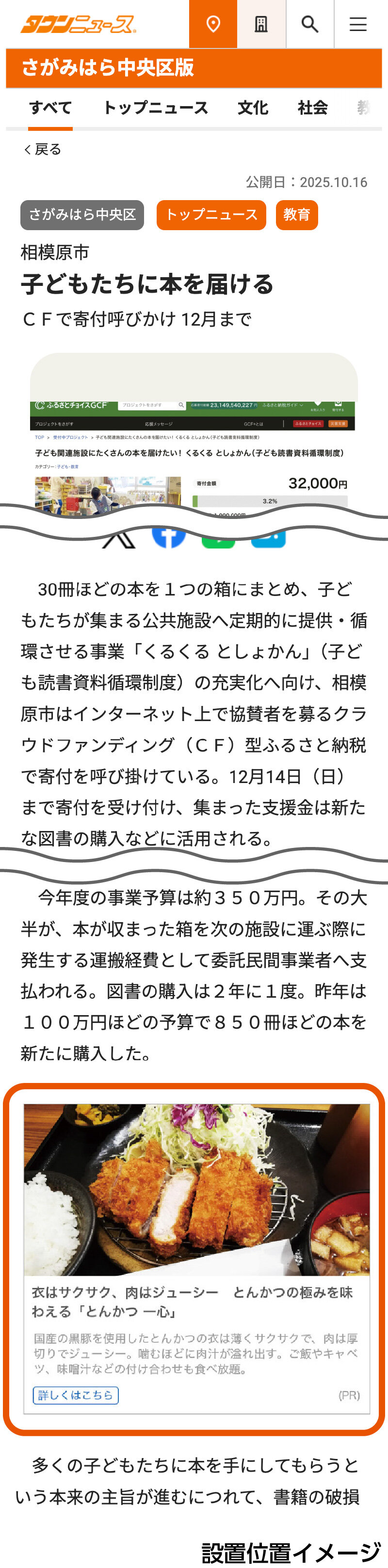 タウンニュースの記事ページ下部に最大2枠まで