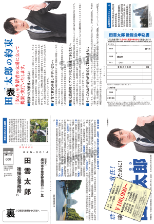 有権者に政策などを伝えるのに有効なリーフレットは様々なサイズと形状からお選びいただけます。また、キャッチコピーや内容についてもイメージを高め、支持へとつながる効果的な文章をご提案。一人ひとりのコンセプトに合ったデザインであなたの思いを伝えます。