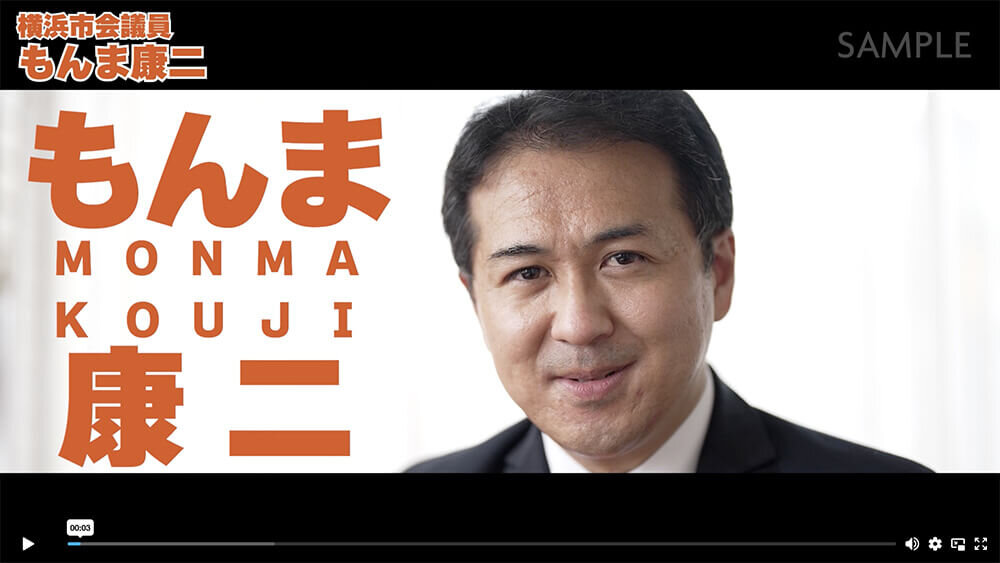 写真と活字だけでなく、動画でメッセージを発信できます。動画は当社が撮影し(1本無料)、YouTubeの政治の村チャンネルで公開。個人ページには計5本の動画を表示できます。