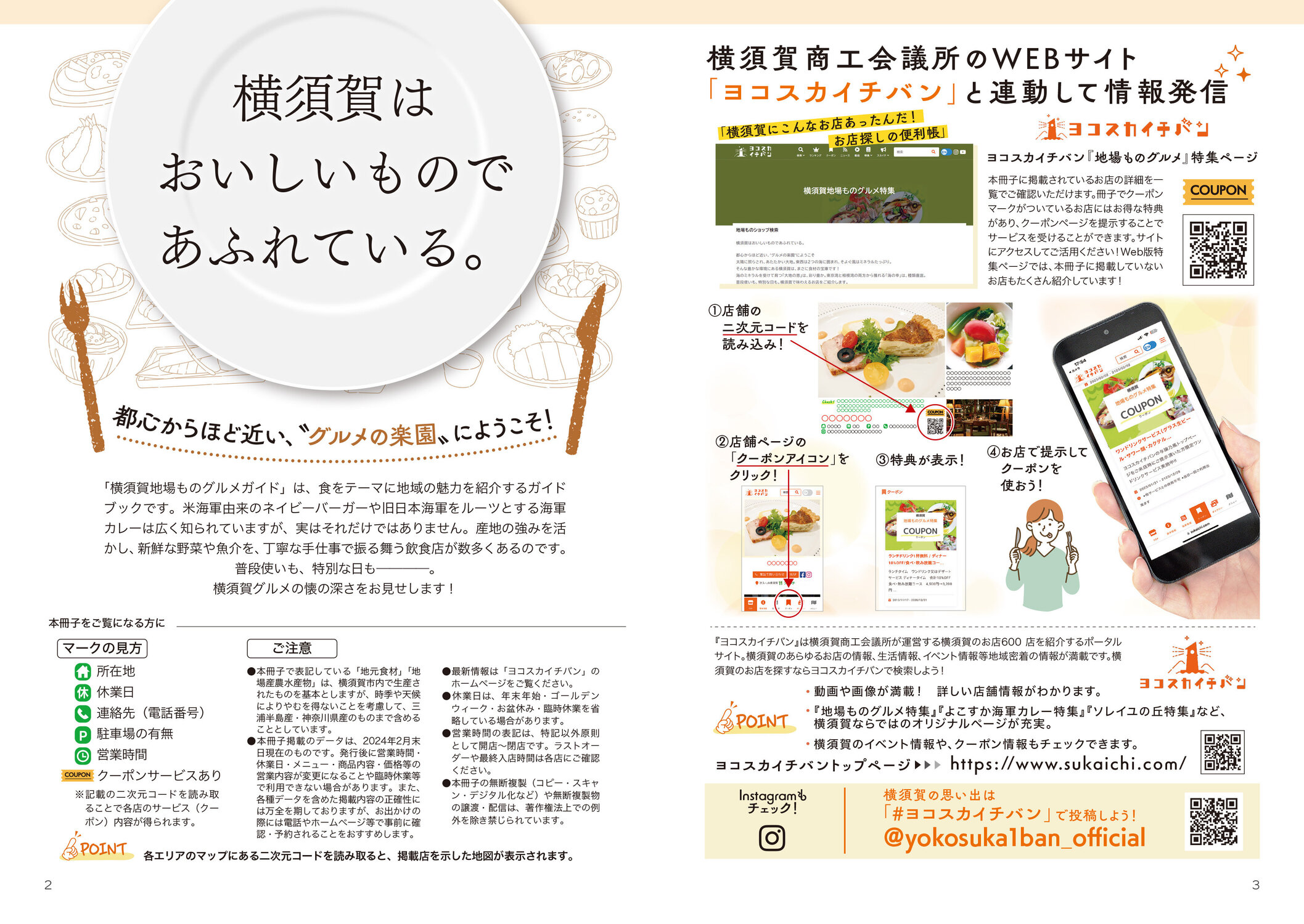横須賀を訪れる観光客や滞在客に、地場産の新鮮な野菜や魚介を扱う飲食店を紹介するグルメガイドブック。横須賀商工会議所が開設しているWEBサイト「ヨコスカイチバン」と連動しており、紙面に記載されている各店の二次元コードから、詳細な店舗情報、クーポンなどに誘導する仕掛けとなっている。