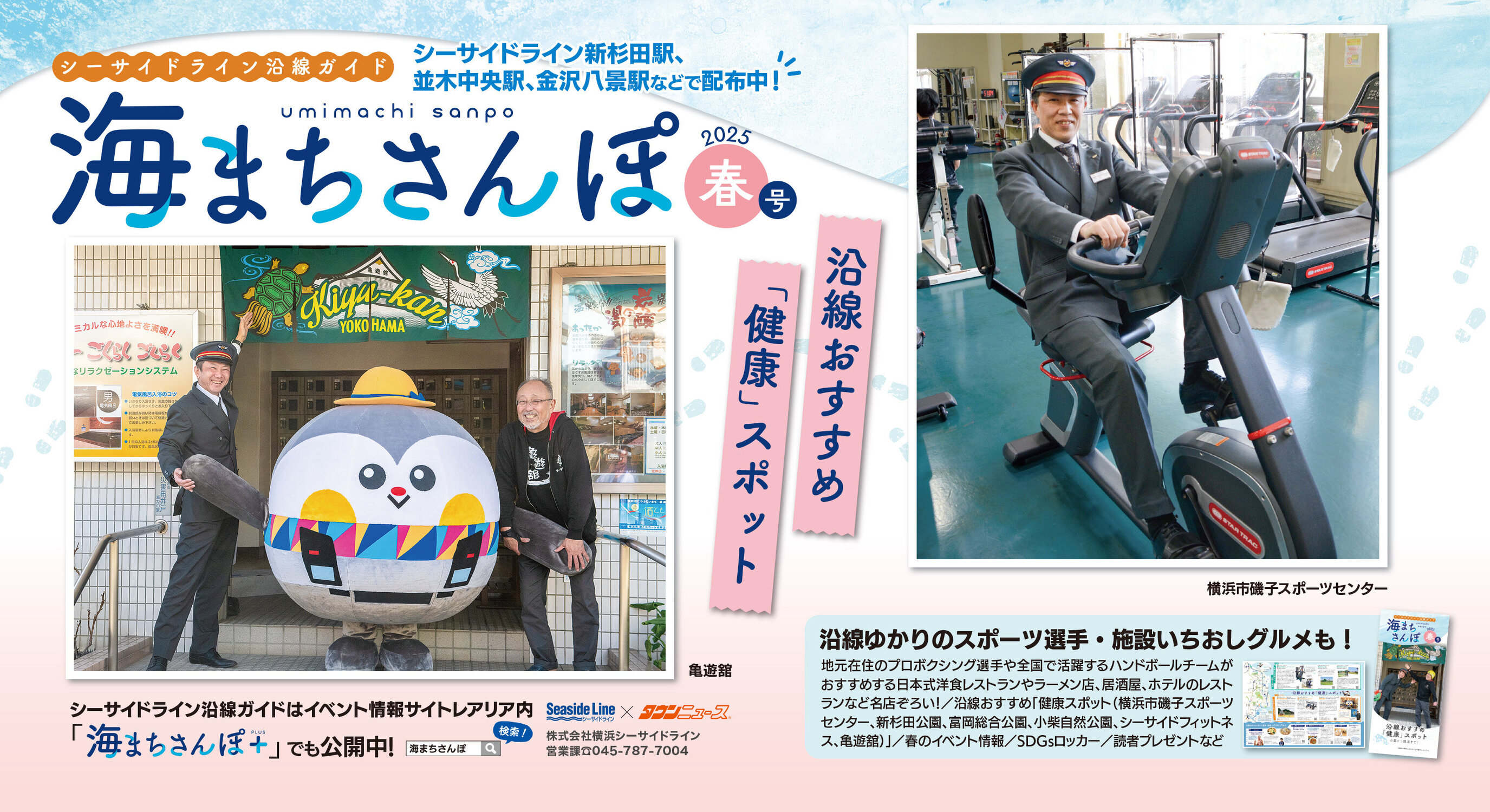 シーサイドライン沿線の情報を紹介する「海まちさんぽ」の紙面の発行にあわせ、車内ポスターを100部制作。紙面の内容を紹介し、車内でポスターを見た人にもコンテンツに興味を持ってもらえるように心がけています。