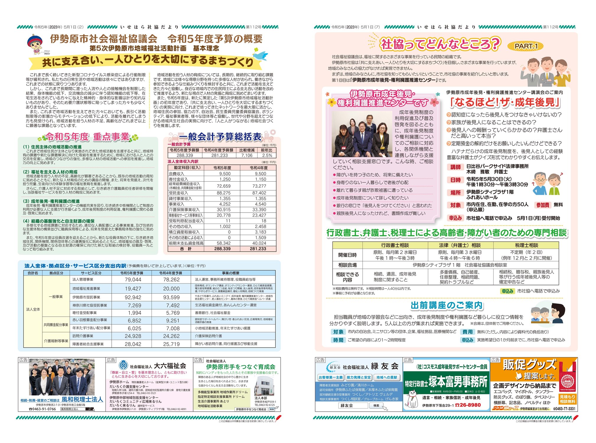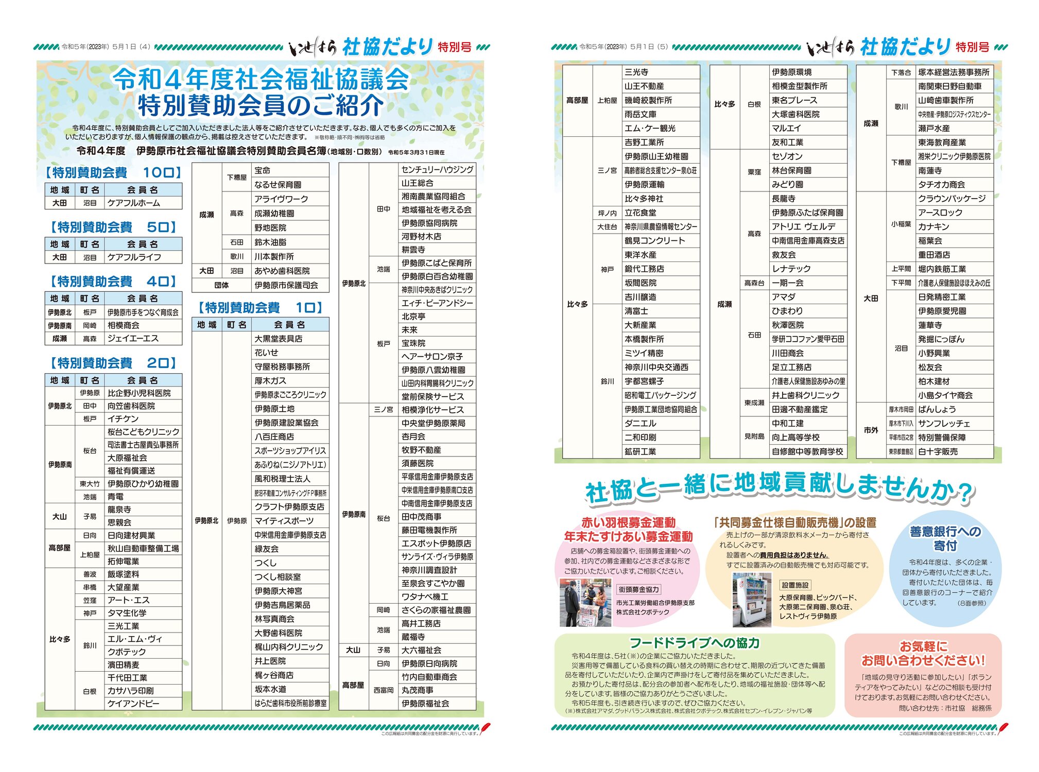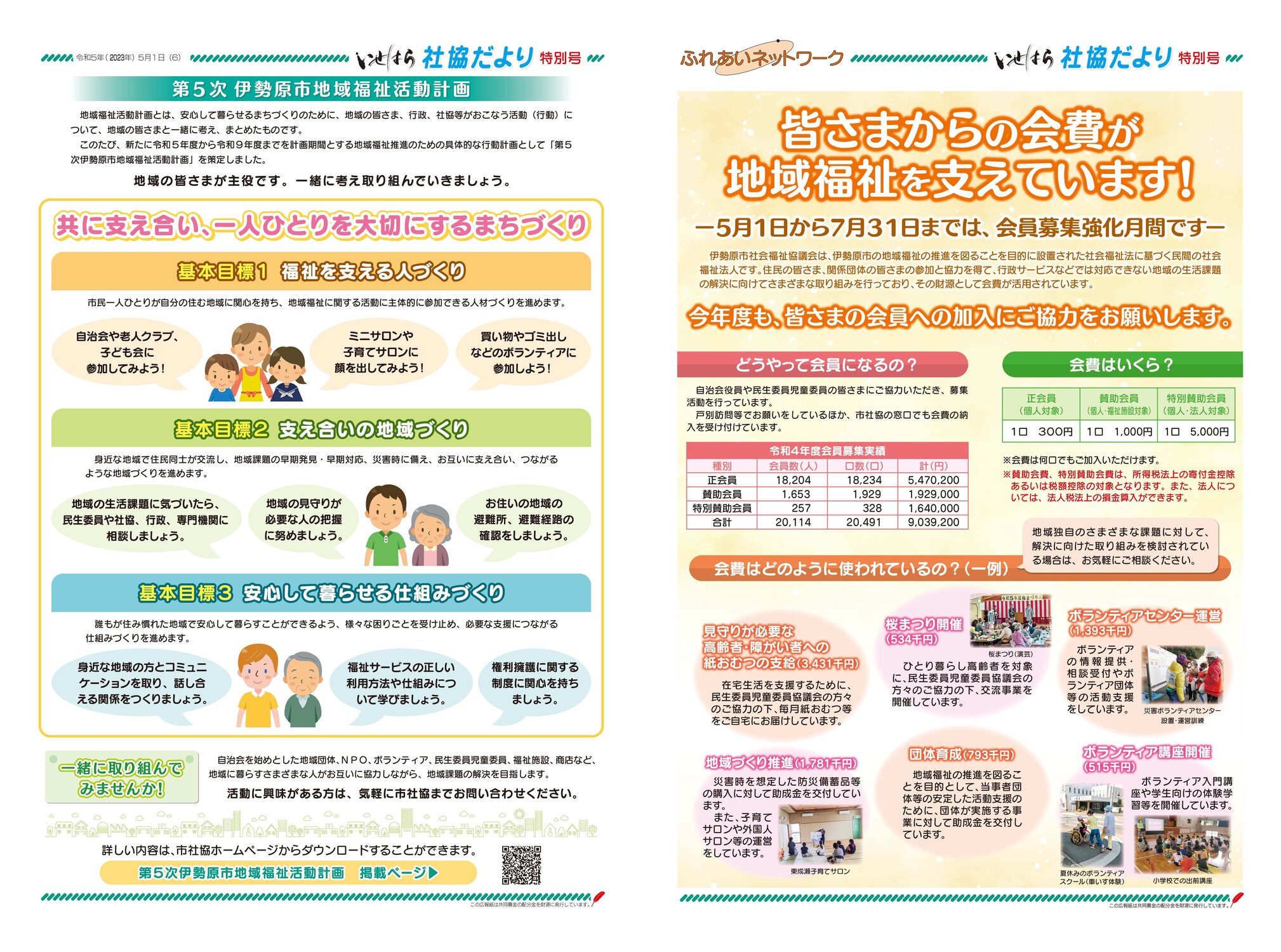 伊勢原市社会福祉協議会の会報。年4回発行しています。社協の理念や活動状況、決算状況などを先方から提供してもらい、レイアウトなどをこちらで担当。A3、8ページの中に写真やイラストなどを効果的に使い分かりやすくまとめています。会員向けはもちろん、広く市民に知らせるために新聞への折込も手配しています。