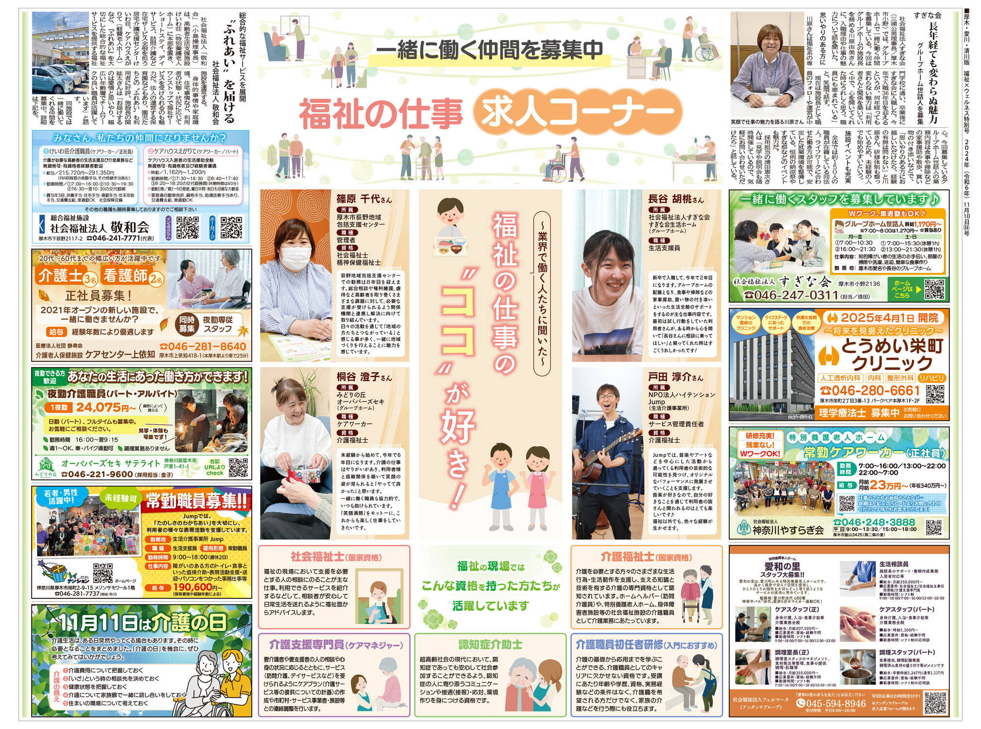 タブロイド判/4ページ 2024年11月10日(日) 発行部数:42,080部(折込:厚木・愛川・清川版の通常号と同じエリア)