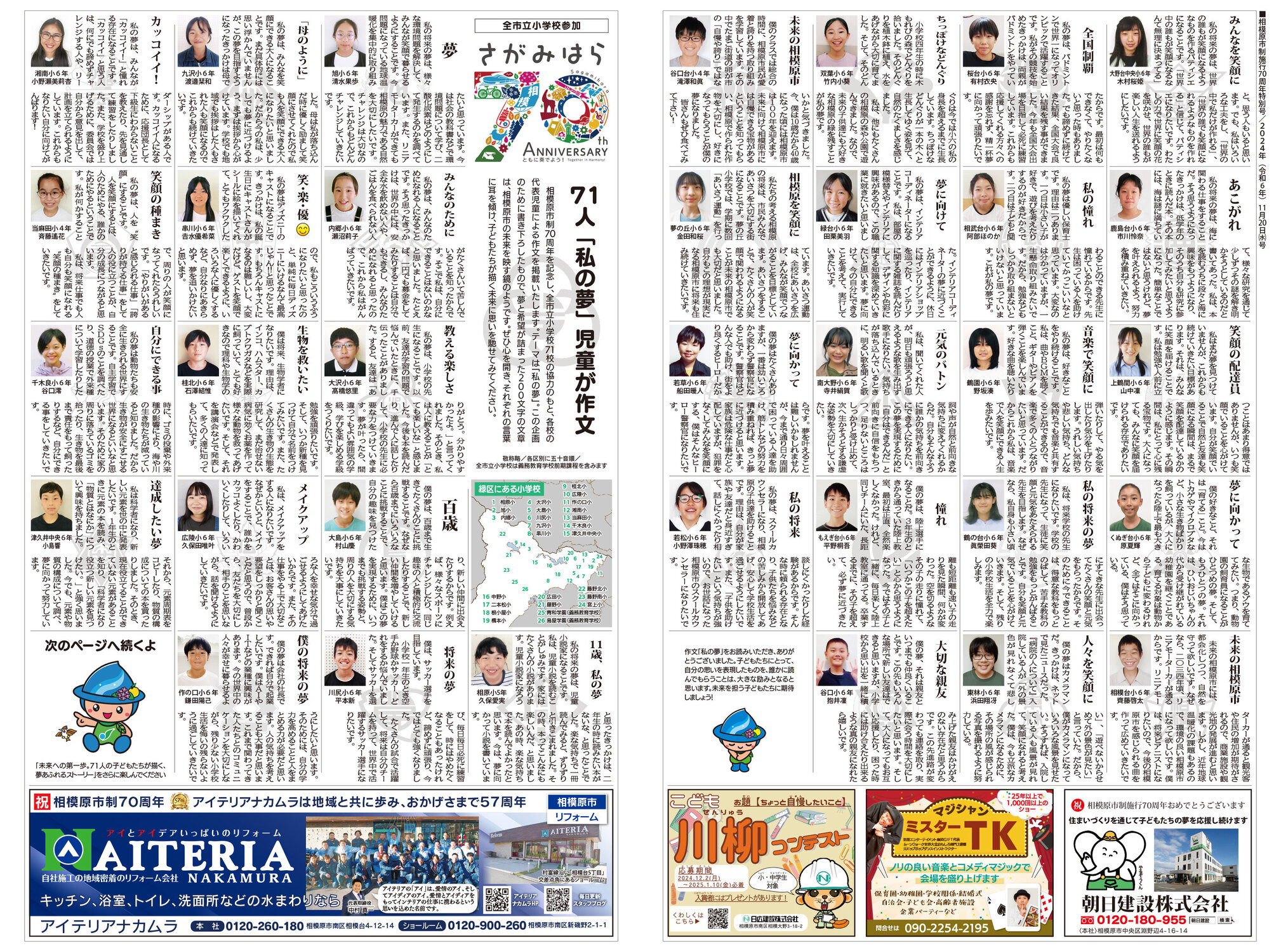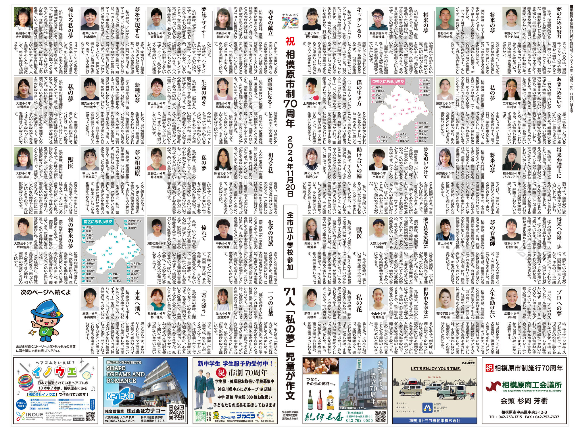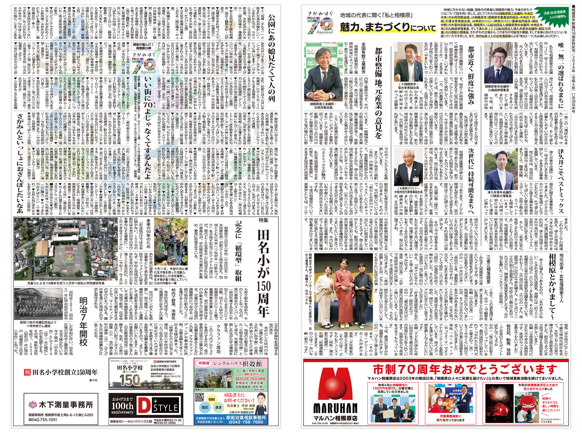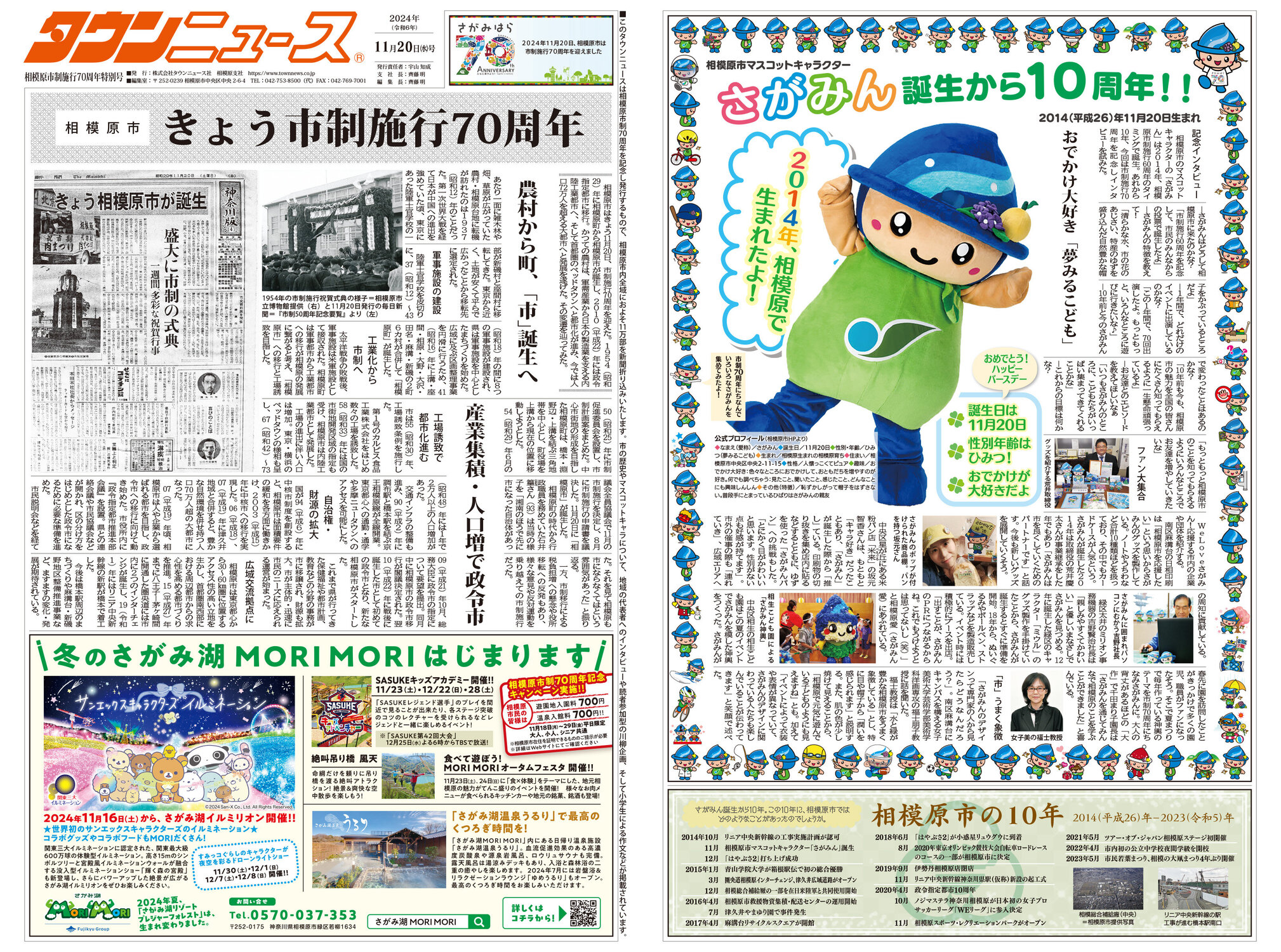 タブロイド判/4ページ 2024年11月20日(水) 発行部数:114,030部(折込:109,900部/相模原市3区 配架:2,000部 小学校71校:2,130部