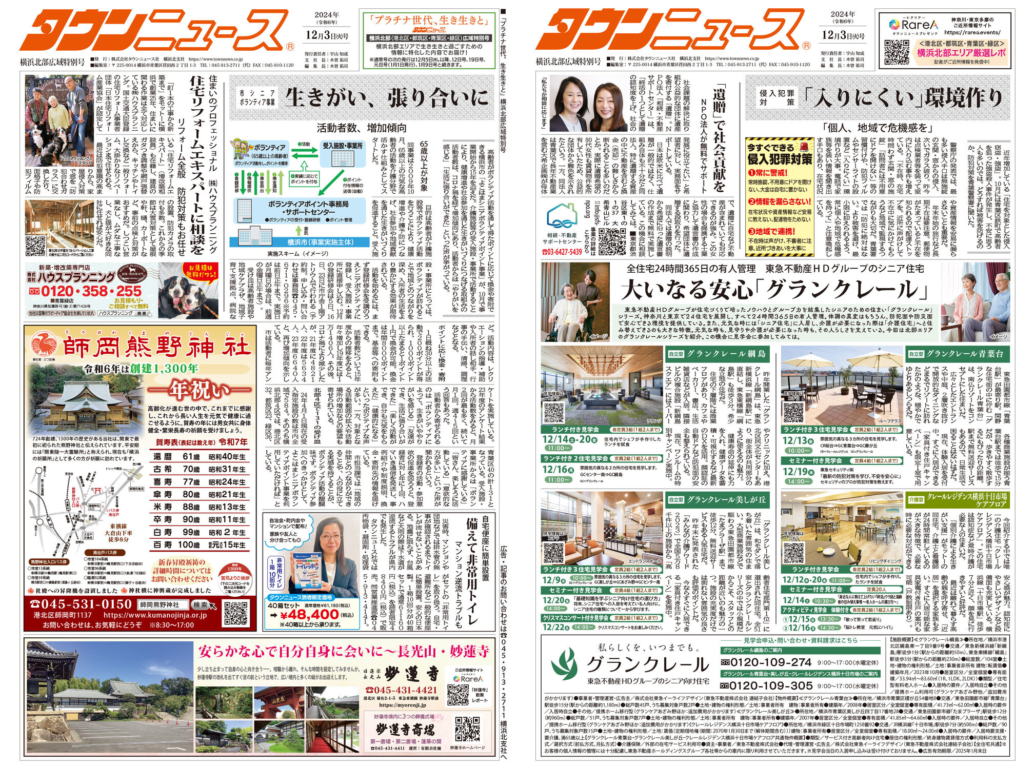 タブロイド判/4ページ 2024年12月3日(火) 発行部数:149,600部(折込:横浜市港北区、青葉区、緑区、都筑区)